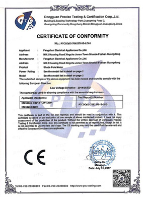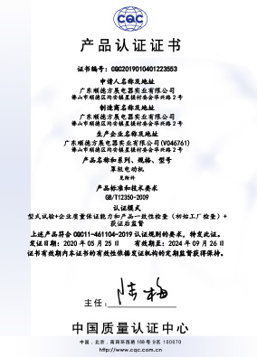中國3C認證證書(罩極電機)